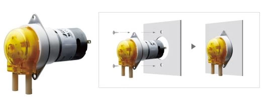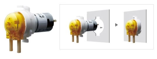 Das Gehäuse kann ohne Verwendung von Werkzeugen einfach montiert und entfernt werden. So kann auch eine Wartung wie beispielsweise ein Schlauchaustausch schnell durchgeführt werden.